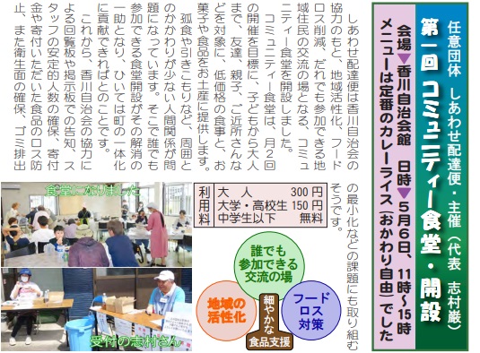 コミュニティ食堂初回の様子を自治会新聞「広報かがわ」に掲載していただきました